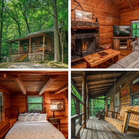 After an exciting day of hiking and floating, relax on the deck’s porch swing or warm up in front of the cabin’s native-stone fireplace. Firewood is included with your rental.