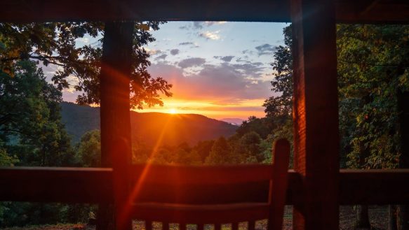 On clear mornings, greet the day with views of glorious mountain-top sunrises from the cozy comfort of Mountain Sunrise’s King bed – or bedside Jacuzzi tub. Snuggle on the front porch swing or in front of the cabin’s native stone fireplace and leave the outside world behind. With trees all around and the world far away, our Mountain Sunrise cabin is another guest favorite for romantic getaways.