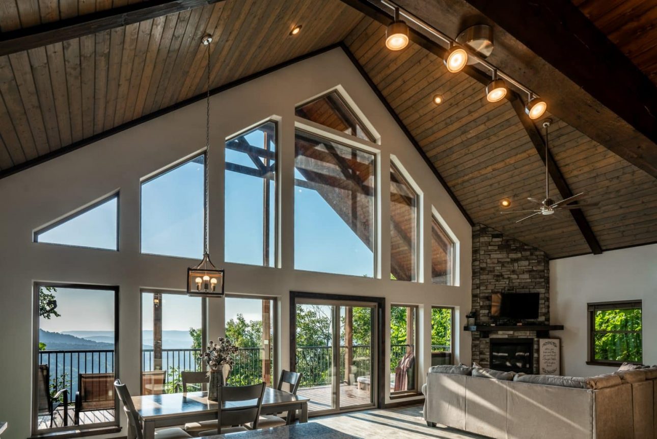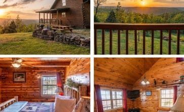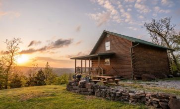 The Wildwood Cabin is nestled high up in the treetops overlooking Buffalo River Country. This beautiful mountain-top cabin for four guests (dbl occ) is big on amenities and has a sweeping view across the upper Buffalo River wilderness!